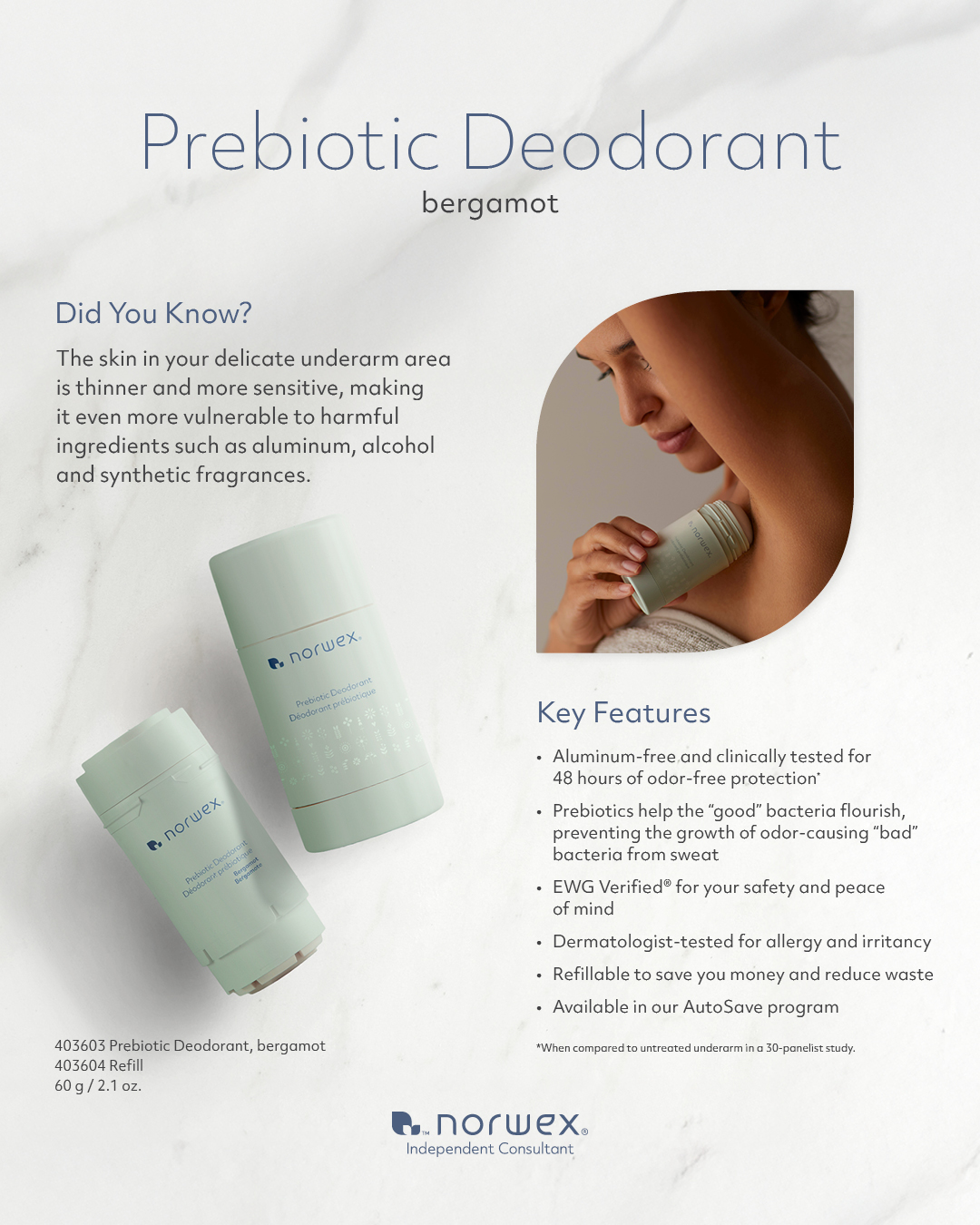Norwex Prebiotic Deodorant is here, delivering 48 hours of clinically tested odour protection* while working with the skin, not against it. This innovative addition to our Personal Care line is timely, powerful and perfectly aligned with the energy of spring.