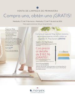 💥A partir del mediodía, CT, del 19 de marzo hasta el mediodía CT, del 1º de abril, cuando tus Clientes compren un Superior Mop System (sistema de limpieza superior), recibirán un Superior Mop System XL en azul/verde ¡GRATIS!