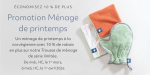 Avec 4 foyers sur 5 qui participent chaque année au grand ménage de printemps, prenez l’initiative de montrer aux familles une meilleure façon de nettoyer. Profitez de cet élan en aidant votre clientèle à aller au-delà d’un simple nettoyage rapide de surface et à s’attaquer à un rafraîchissement complet de la maison, pièce par pièce. Assurez-vous de cocher chaque étape de la Liste de contrôle du ménage de printemps avec vos clients et de les aider à faire le plein pour la saison. Proposez la Promotion Ménage de Printemps de ce mois-ci, avec la Trousse de ménage de série limitée – nos 3 incontournables en microfibre Norwex – avec 10 % de rabais sur le prix d’ensemble déjà réduit.