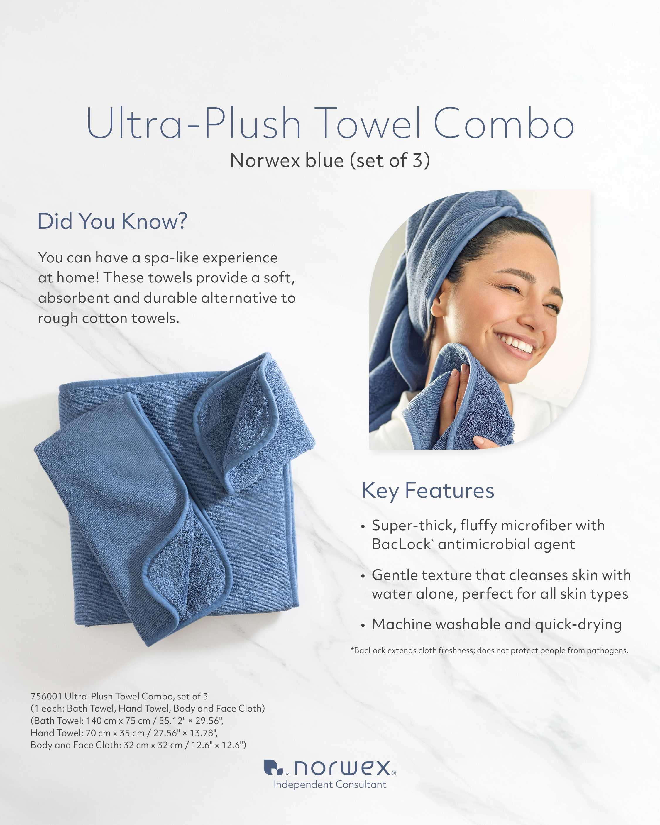 Ultra-Plush Towel Combo, Norwex blue PIS US CDN